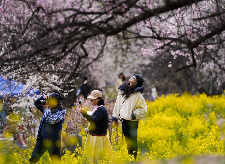 游客在西藏林芝市巴宜區(qū)嘎拉村欣賞桃花(2025年4月2日攝)。新華社記者 晉美多吉 攝