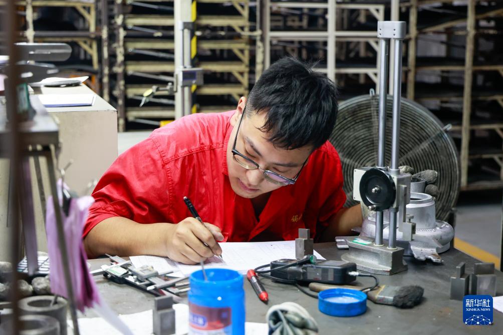 9月16日,工作人員在江蘇無(wú)錫濱湖區(qū)無(wú)錫錫南科技股份有限公司的生產(chǎn)車間進(jìn)行砂芯制造。