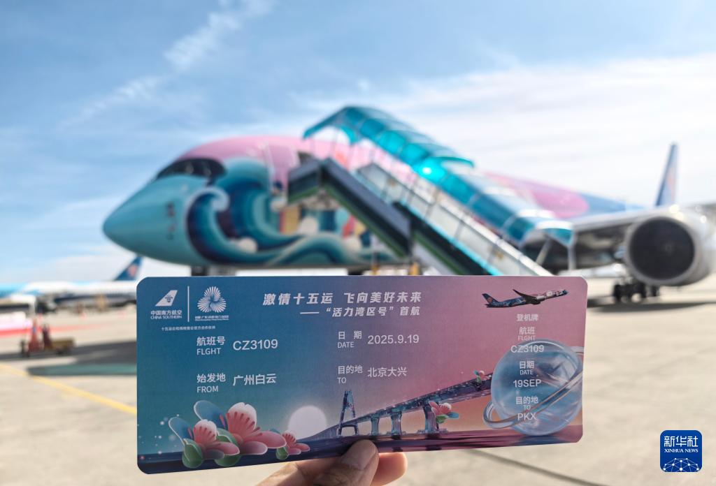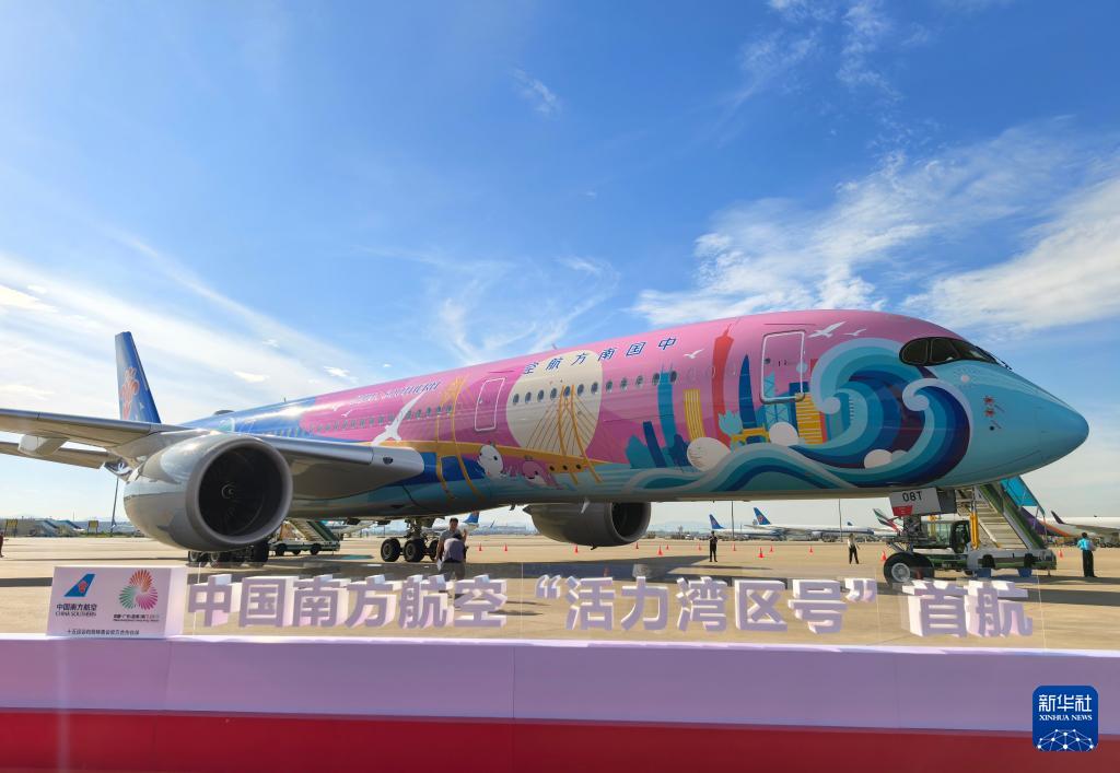 這是停靠在廣州白云國(guó)際機(jī)場(chǎng)的“活力灣區(qū)號(hào)”(9月19日攝)。