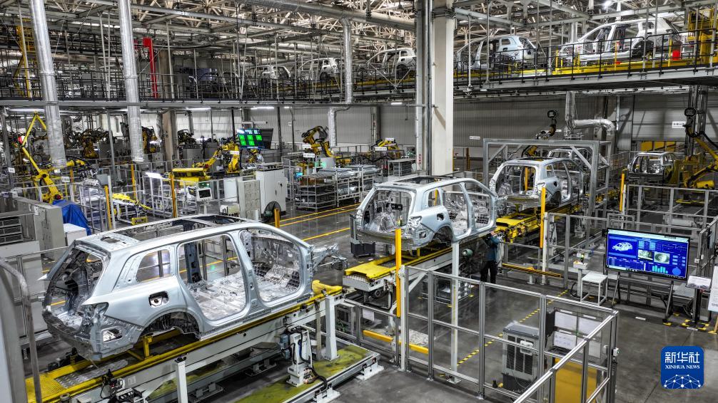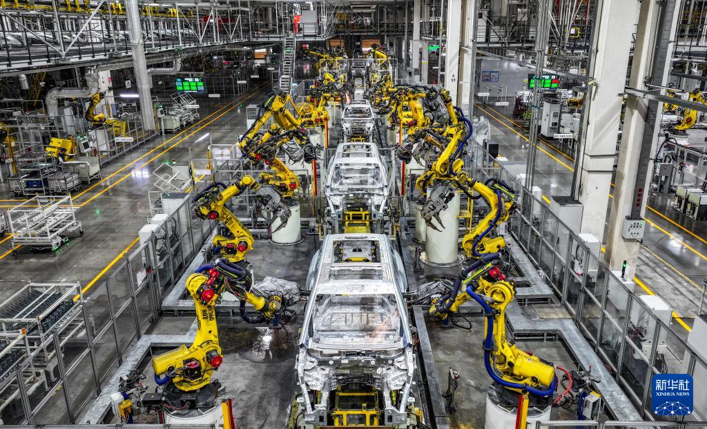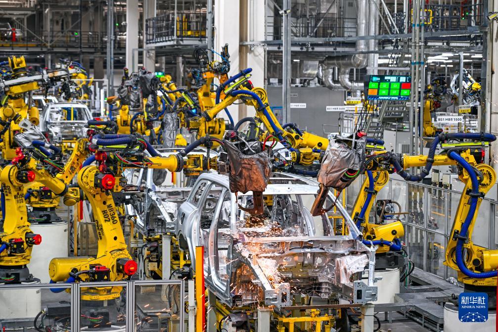9月19日在位于重慶市兩江新區(qū)的賽力斯汽車超級(jí)工廠拍攝的自動(dòng)化生產(chǎn)作業(yè)現(xiàn)場(chǎng)。