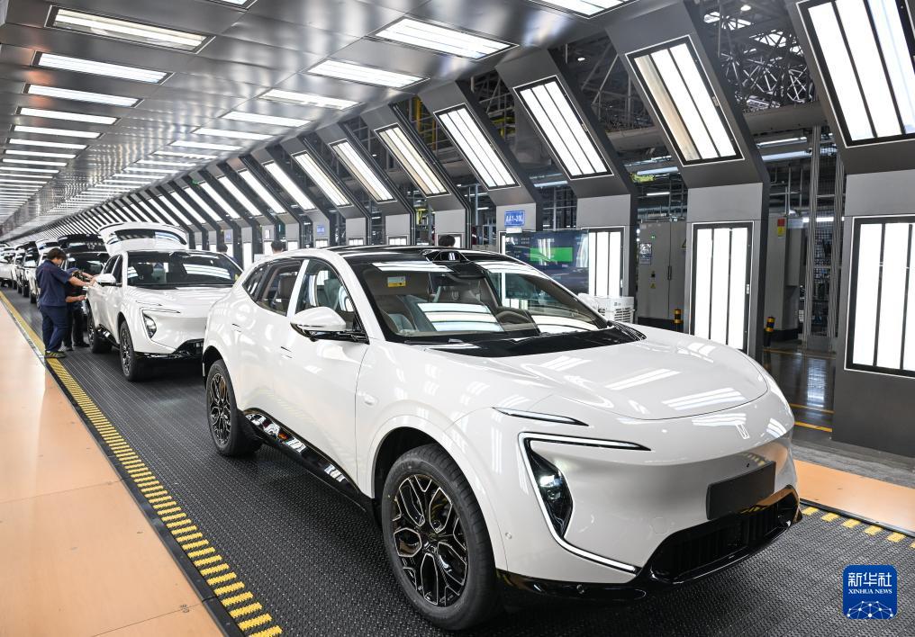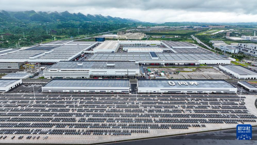 9月19日在位于重慶市兩江新區(qū)的賽力斯汽車超級(jí)工廠拍攝的即將下線的新能源汽車(無人機(jī)照片)。
