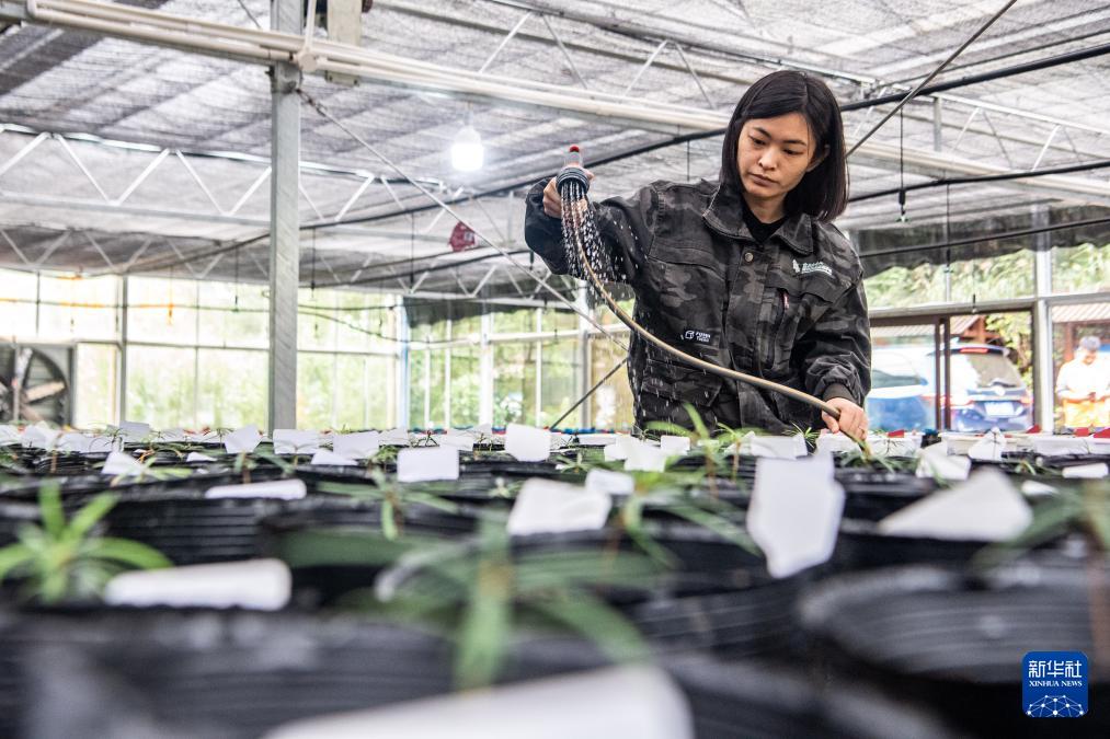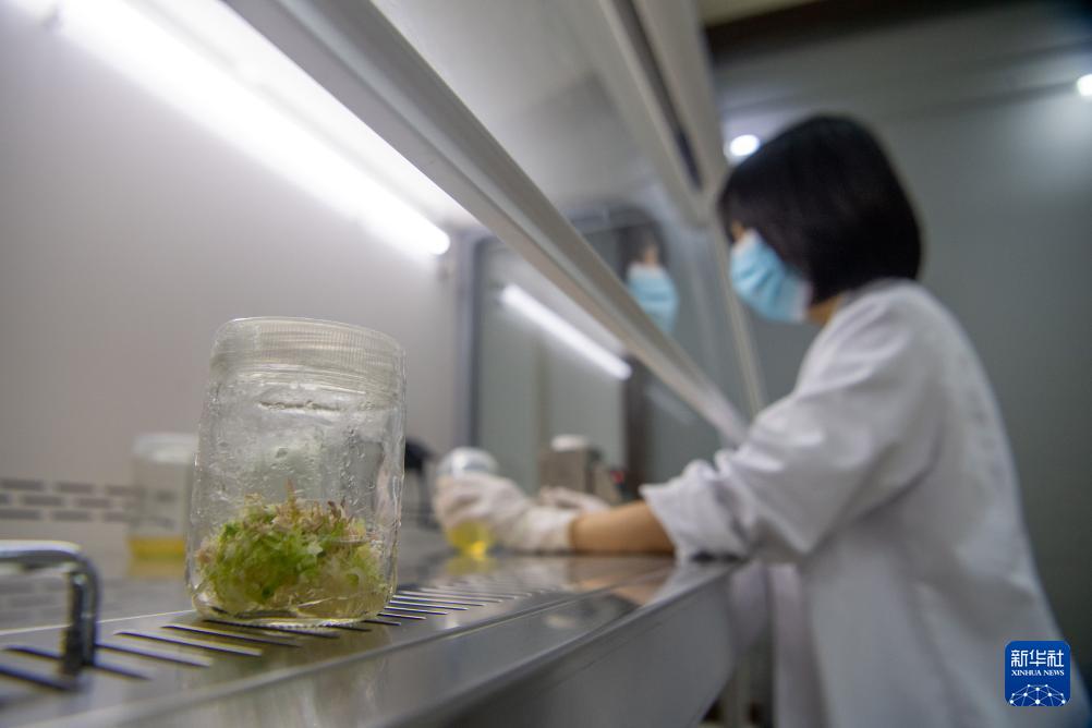 9月23日,在重慶金佛山國家級自然保護區(qū)管理事務(wù)中心,工作人員韋冠吾在實驗室進行植物繁育實驗。