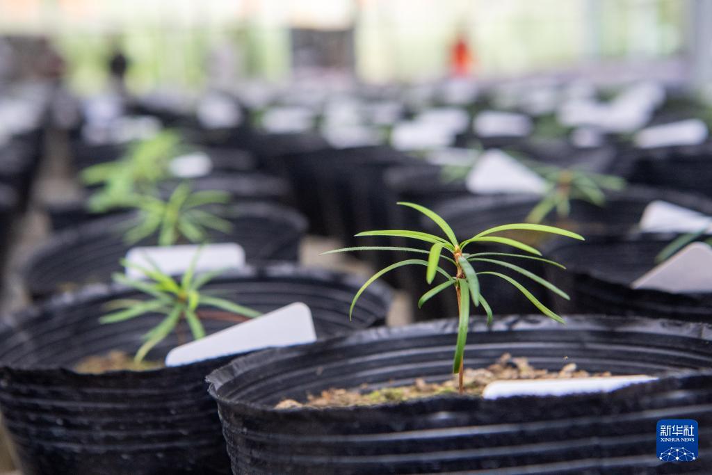 這是9月22日拍攝的人工繁育的銀杉幼苗。