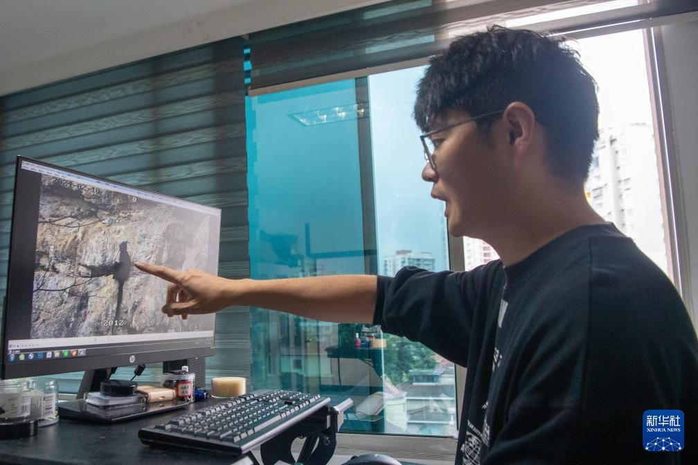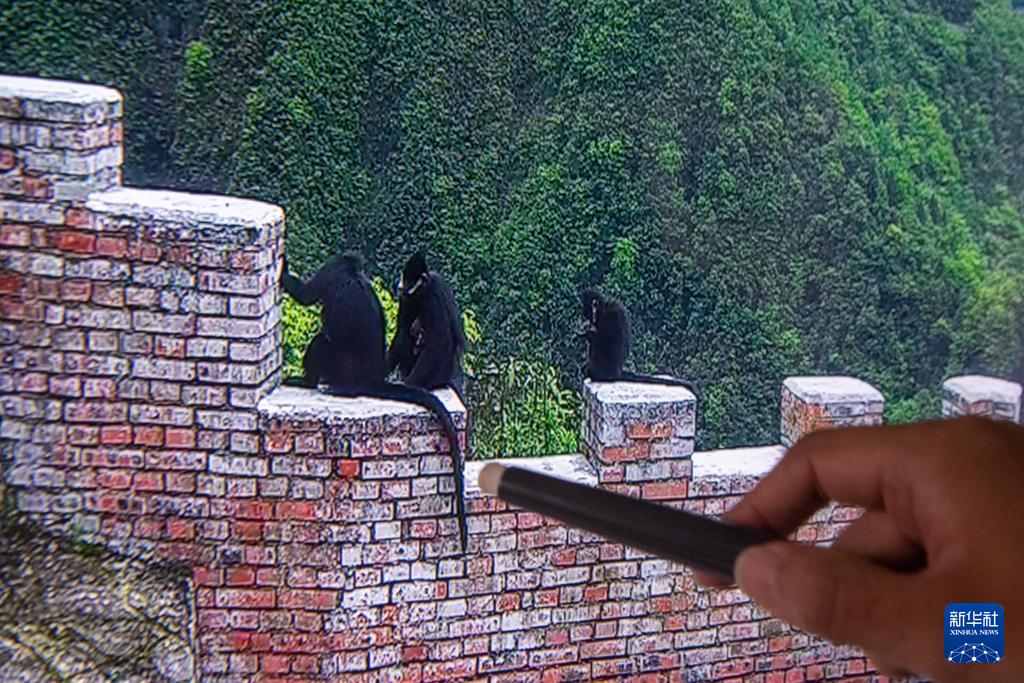 9月23日,在重慶金佛山國家級自然保護區(qū)管理事務(wù)中心,工作人員李新通過視頻分析黑葉猴生活習性。
