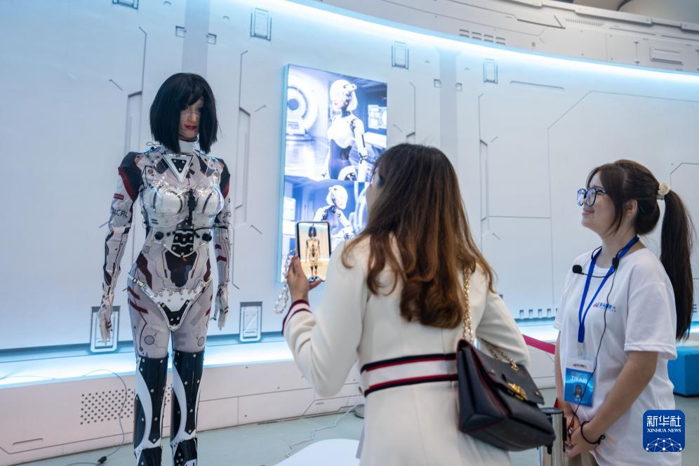 9月24日,在株洲國際會展中心,觀眾(右二)在了解一臺人形機(jī)器人。