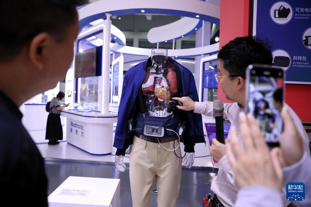 9月24日,工作人員為參觀者介紹植入式左心室輔助系統(tǒng)。
