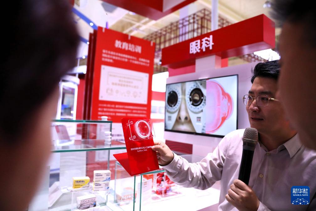 9月24日,工作人員為參觀者介紹“連續(xù)視程散光矯正型人工晶狀體”。