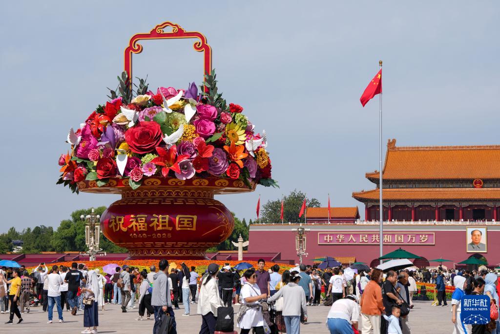 9月25日在天安門廣場拍攝的“祝福祖國”大花籃。