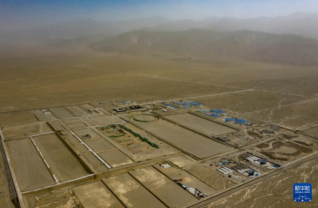 9月22日在新疆巴音郭楞蒙古自治州若羌縣拍攝的三峽集團“疆電外送”第四通道電源項目施工現(xiàn)場(無人機照片)。
