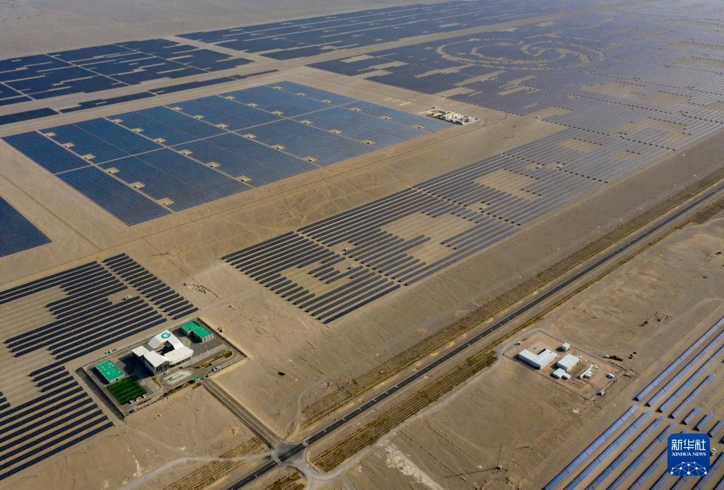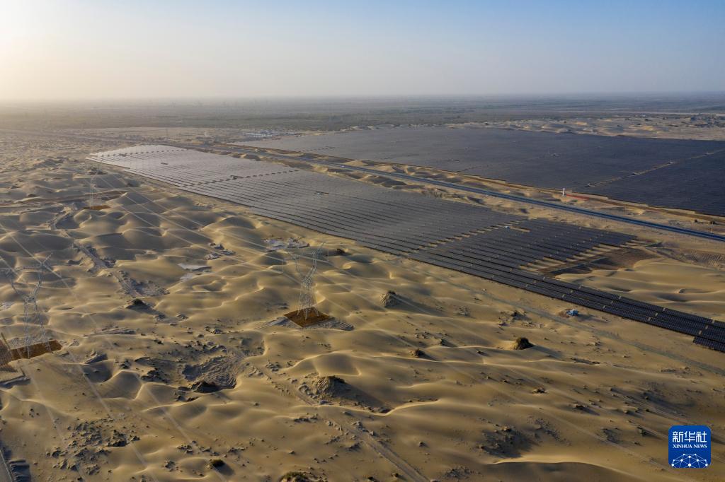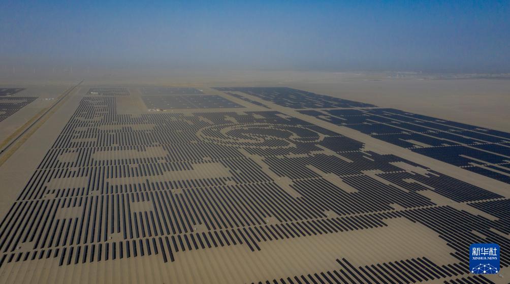昔日的戈壁荒漠,如今由太陽能光伏板匯聚成“藍色海洋”,由風力發(fā)電機組成“白色森林”,正孕育著無限“風光”。