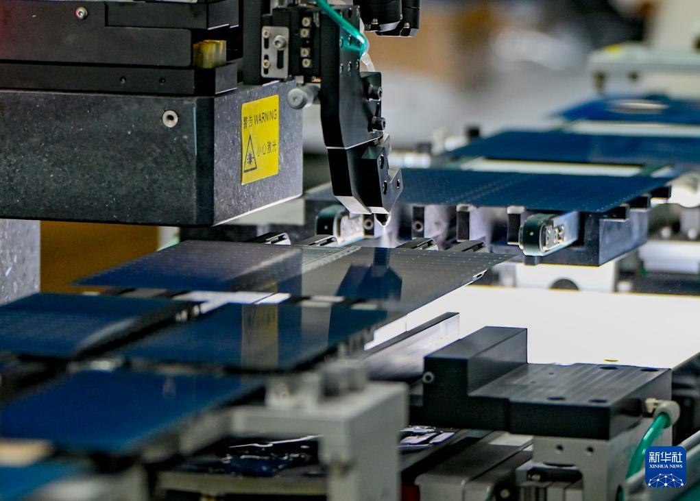 9月22日,在新疆巴音郭楞蒙古自治州若羌縣的國晟企誠新能源有限公司,全自動劃片機在切割光伏電池片。