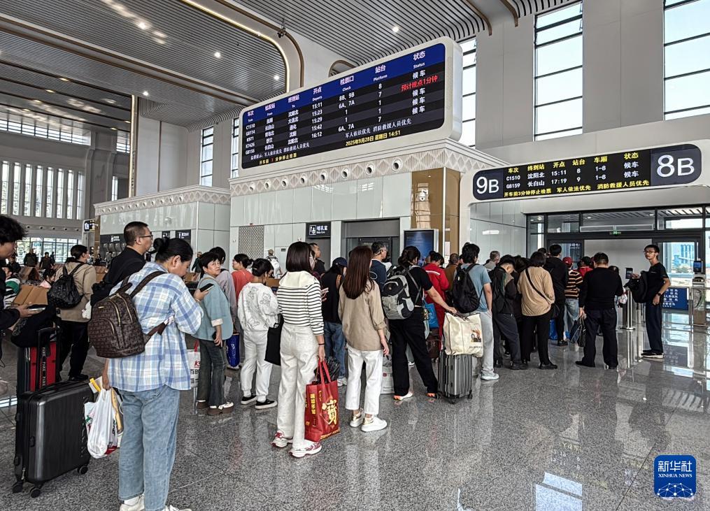 旅客在撫順站候車,準(zhǔn)備乘車出行(10月1日攝)。