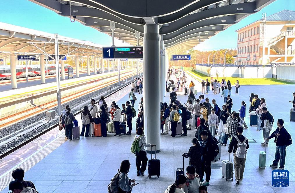旅客在長白山站準(zhǔn)備乘車(10月3日攝)。