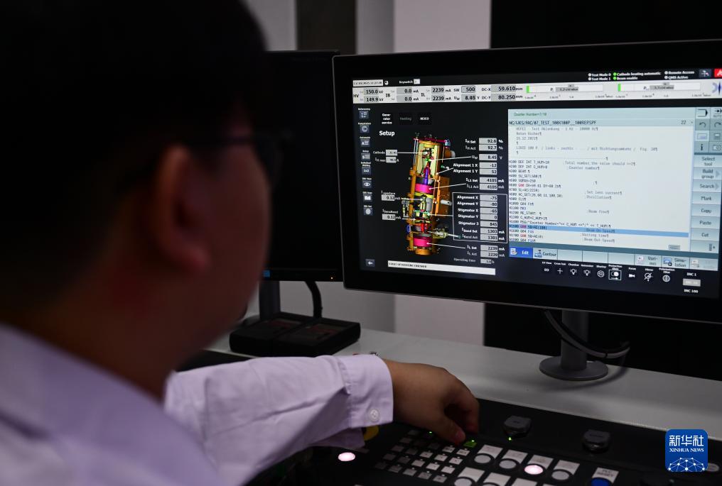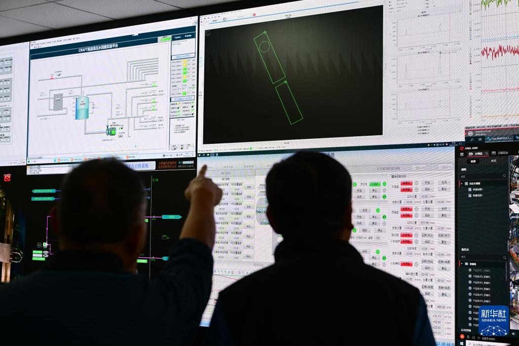10月13日,科研人員在聚變堆主機(jī)關(guān)鍵系統(tǒng)綜合研究設(shè)施“夸父”(CRAFT)偏濾器原型部件測試現(xiàn)場工作。