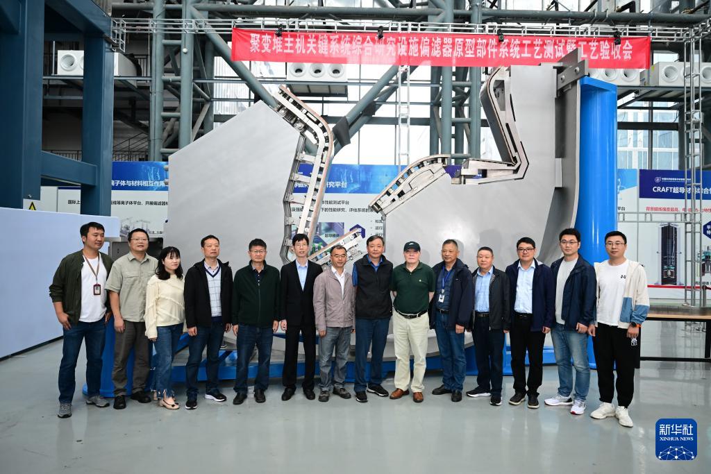 10月13日,專家組和科研團(tuán)隊(duì)在聚變堆主機(jī)關(guān)鍵系統(tǒng)綜合研究設(shè)施“夸父”(CRAFT)偏濾器原型部件測試現(xiàn)場合影。