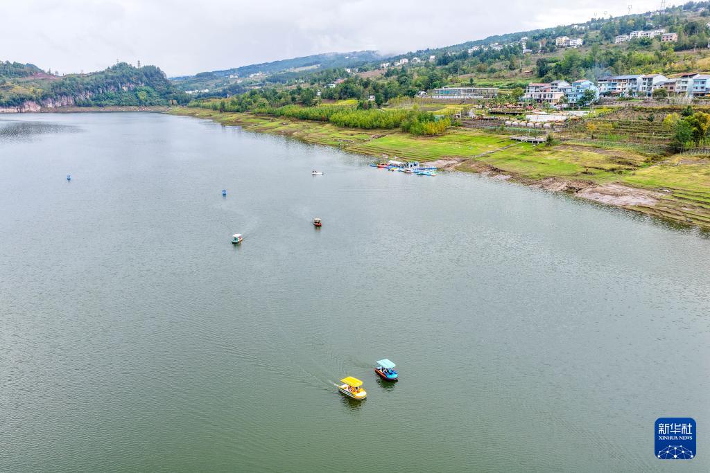 10月15日,游客在濕地公園湖上乘船游玩(無(wú)人機(jī)照片)。