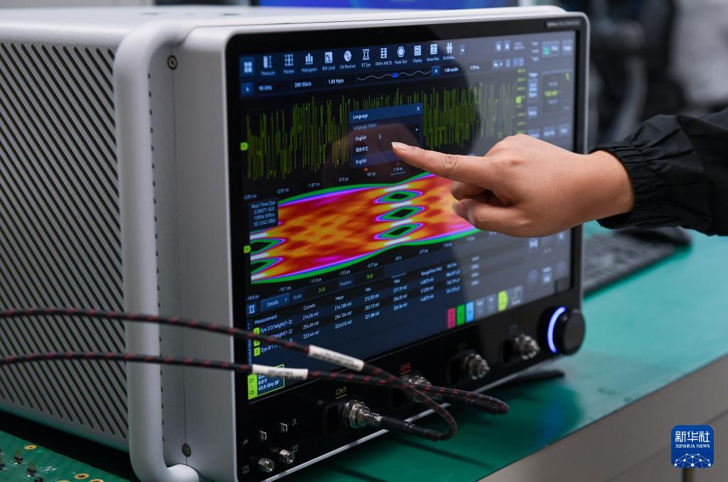 10月13日,在深圳市萬里眼技術(shù)有限公司,實(shí)驗(yàn)室人員進(jìn)行高速SerDes信號(hào)眼圖測(cè)試。
