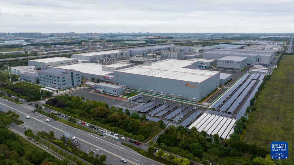 位于中韓(鹽城)產(chǎn)業(yè)園內(nèi)的SK新能源一期動力電池生產(chǎn)基地(10月16日攝,無人機照片)。