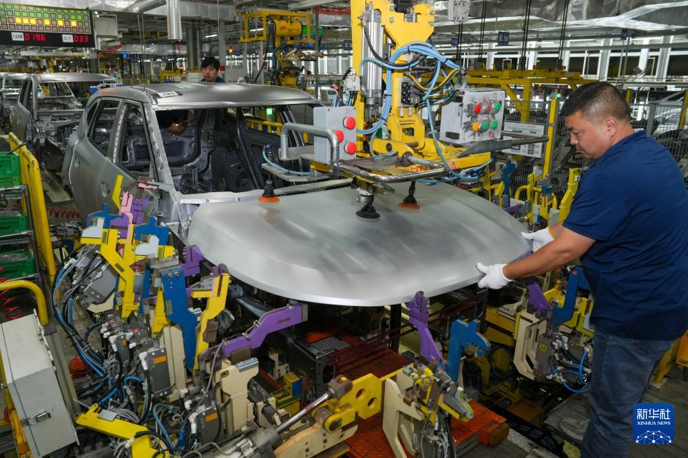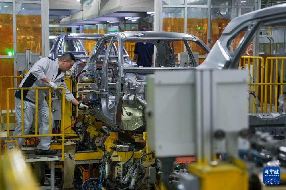 工人在江蘇悅達起亞汽車有限公司生產(chǎn)線上工作(10月16日攝)。