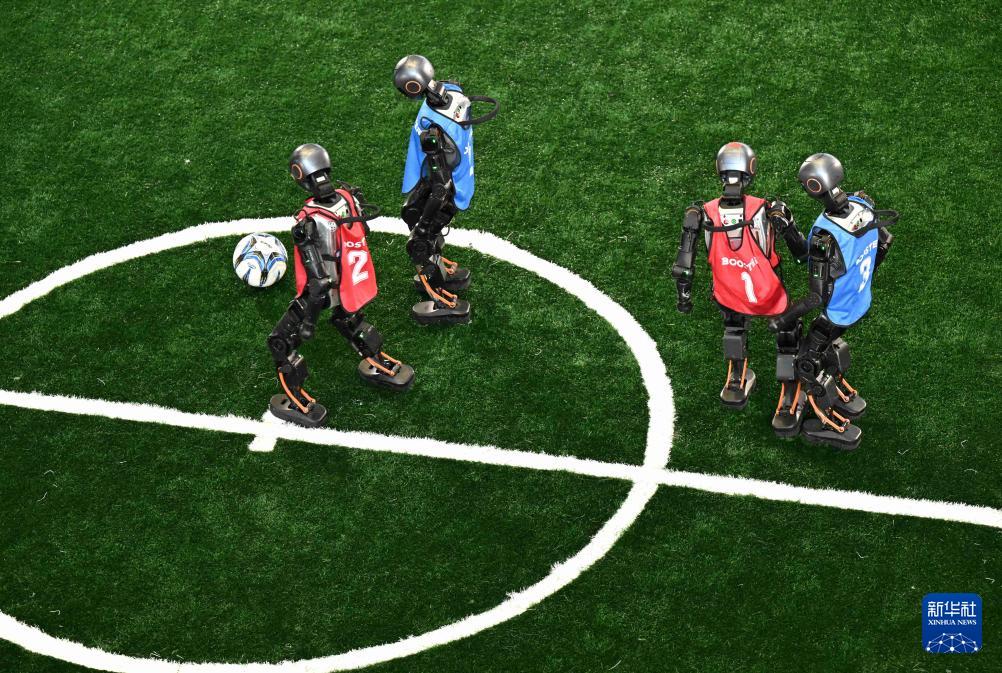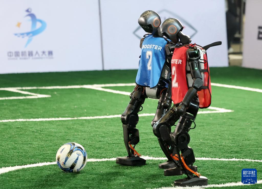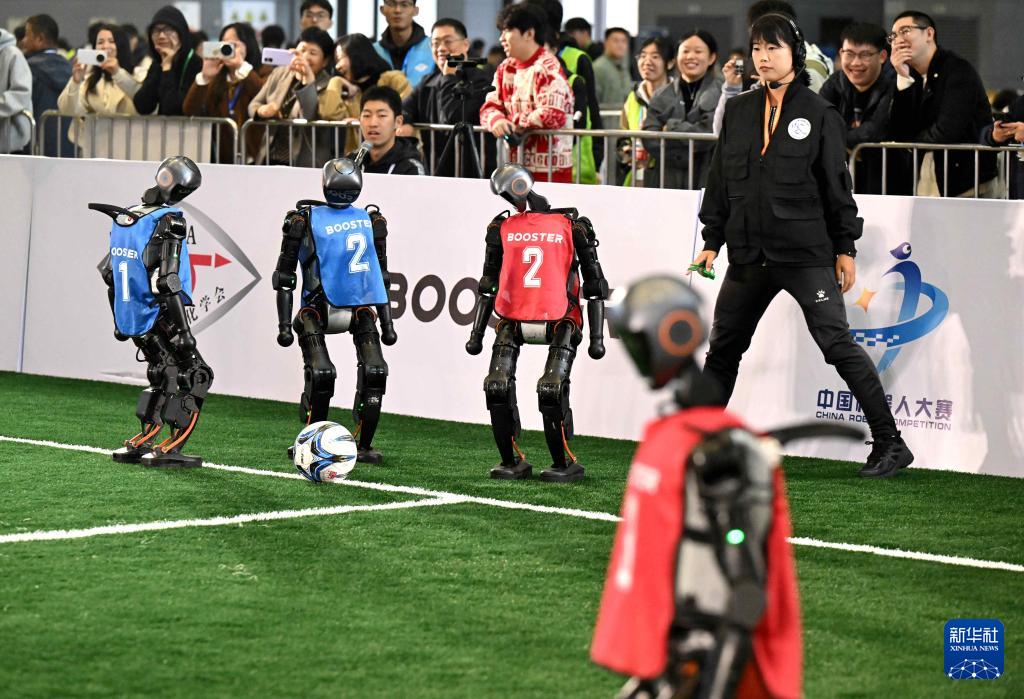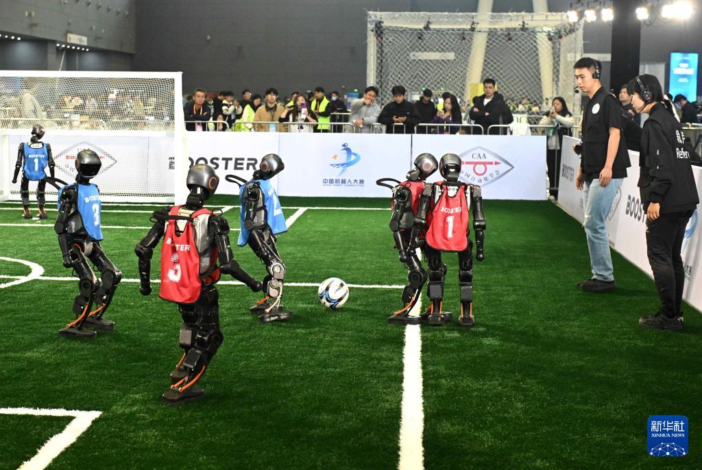 10月17日,機(jī)器人在河北省石家莊國際會(huì)展中心進(jìn)行足球比賽。