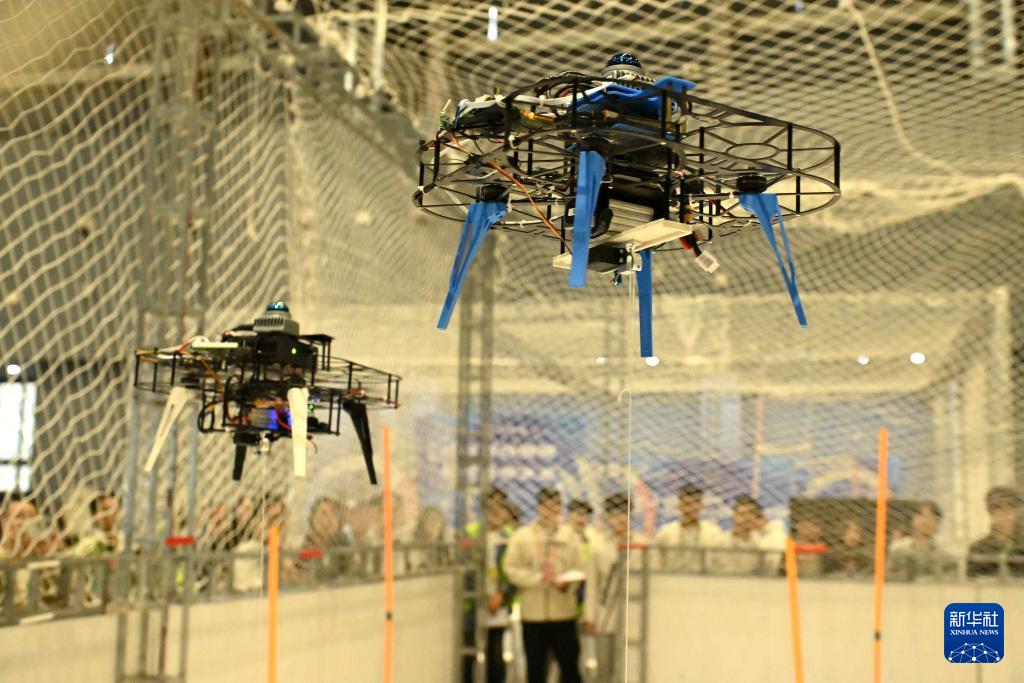 10月17日在河北省石家莊國際會(huì)展中心拍攝的無人機(jī)挑戰(zhàn)比賽。