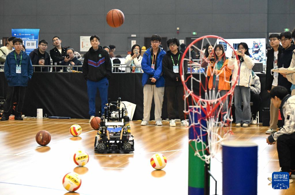 10月17日,籃球機(jī)器人在河北省石家莊國際會(huì)展中心進(jìn)行比賽。