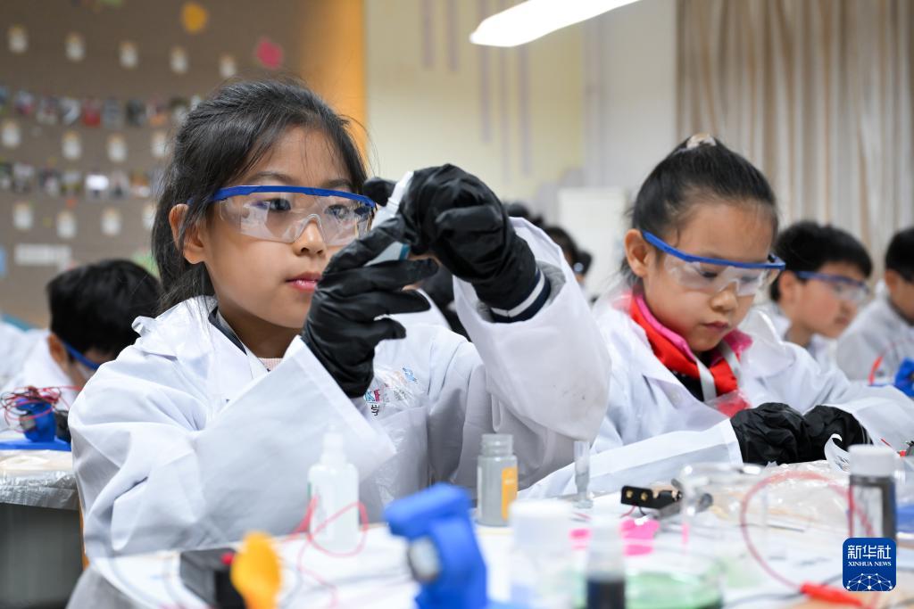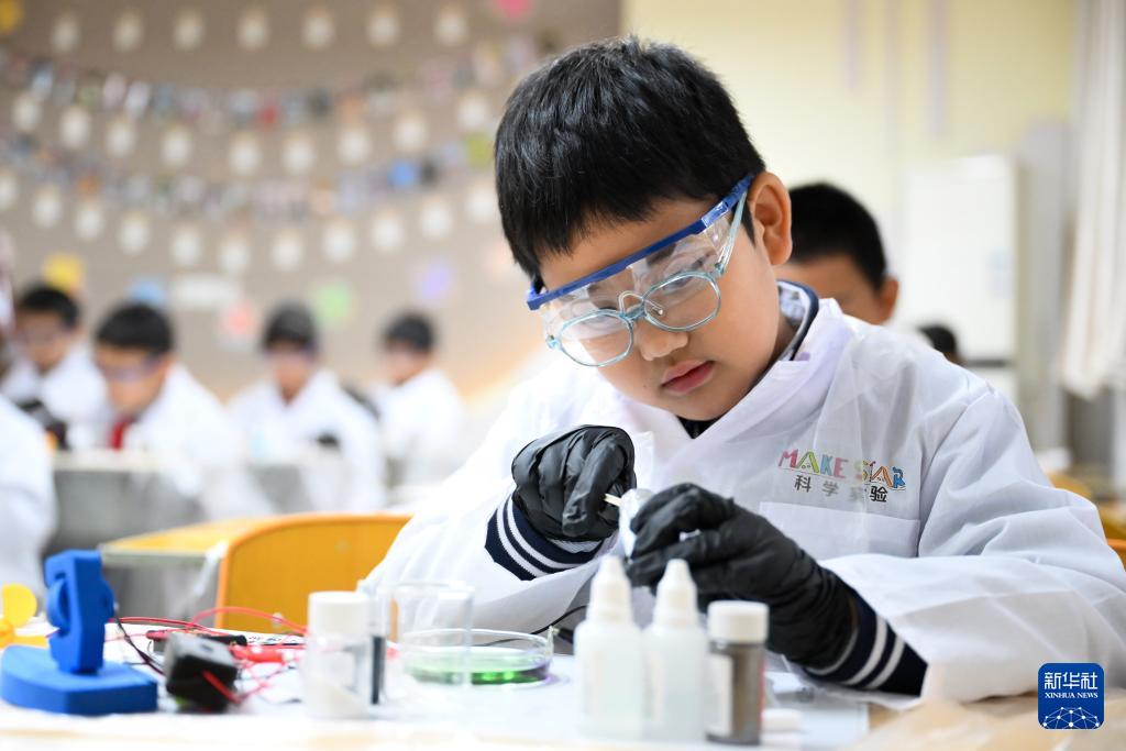 10月18日,學(xué)生在西安市新城區(qū)太華路小學(xué)參加科學(xué)實(shí)驗(yàn)操作賽。