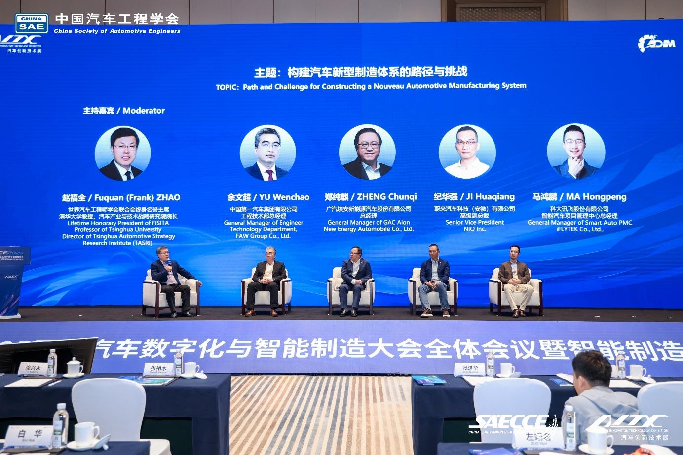 作為數(shù)智大會(huì)主論壇的品牌欄目,本屆大會(huì)高層對(duì)話以“構(gòu)建新型制造體系的路徑與挑戰(zhàn)”為主題。由世界汽車工程師學(xué)會(huì)聯(lián)合會(huì)終身名譽(yù)主席、清華大學(xué)教授趙福全任主持嘉賓,中國(guó)第一汽車集團(tuán)有限公司工程技術(shù)部總經(jīng)理余文超、廣汽埃安新能源汽車股份有限公司總經(jīng)理鄭純麒、蔚來(lái)汽車科技(安徽)有限公司高級(jí)副總裁紀(jì)華強(qiáng)、科大訊飛股份有限公司智能汽車項(xiàng)目管理中心總經(jīng)理馬鴻鵬參與對(duì)話交流。對(duì)話活動(dòng)圍繞企業(yè)開展多主體協(xié)同創(chuàng)新的實(shí)踐與挑戰(zhàn)、AI+創(chuàng)新場(chǎng)景在汽車智能制造全環(huán)節(jié)的實(shí)踐分享與落地挑戰(zhàn)、汽車智能制造行業(yè)標(biāo)準(zhǔn)體系的需求與瓶頸、中國(guó)汽車智能制造面向中長(zhǎng)期發(fā)展愿景呈現(xiàn)了一場(chǎng)精彩紛呈的思辨盛宴。