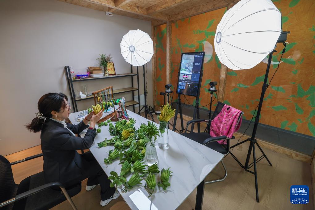 10月22日,在金華市金東區(qū)赤松鎮(zhèn)北山口村的金華佛手農(nóng)林服務(wù)中心內(nèi)的直播間,工作人員進行佛手鮮果及衍生產(chǎn)品的直播銷售。
