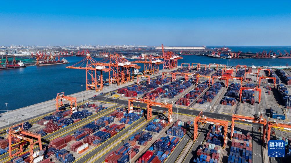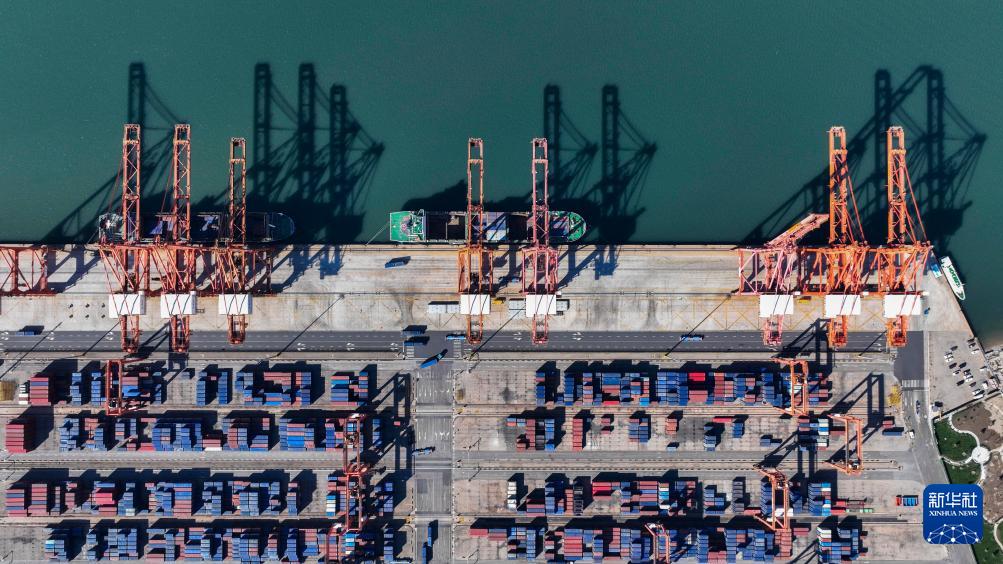 10月27日拍攝的河北省唐山港京唐港區(qū)集裝箱碼頭(無人機照片)。