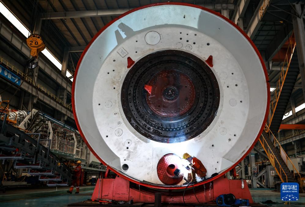10月27日,中鐵科工集團軌道交通裝備有限公司技術工人對盾構(gòu)機盾體進行電焊作業(yè)。