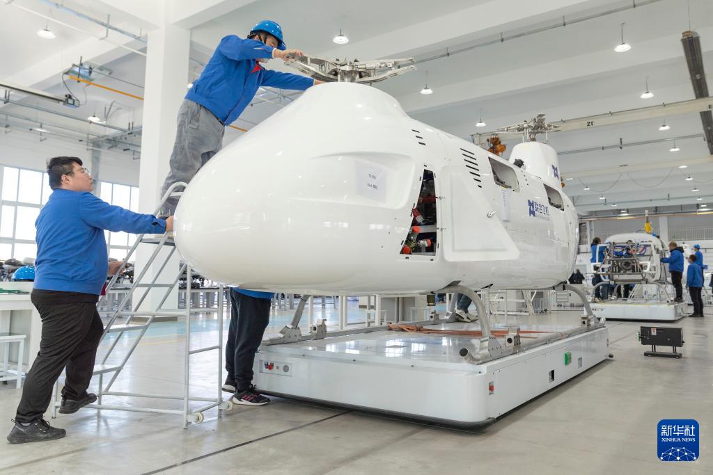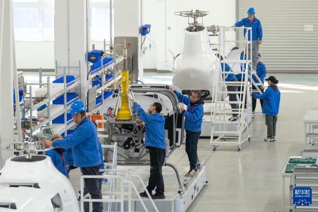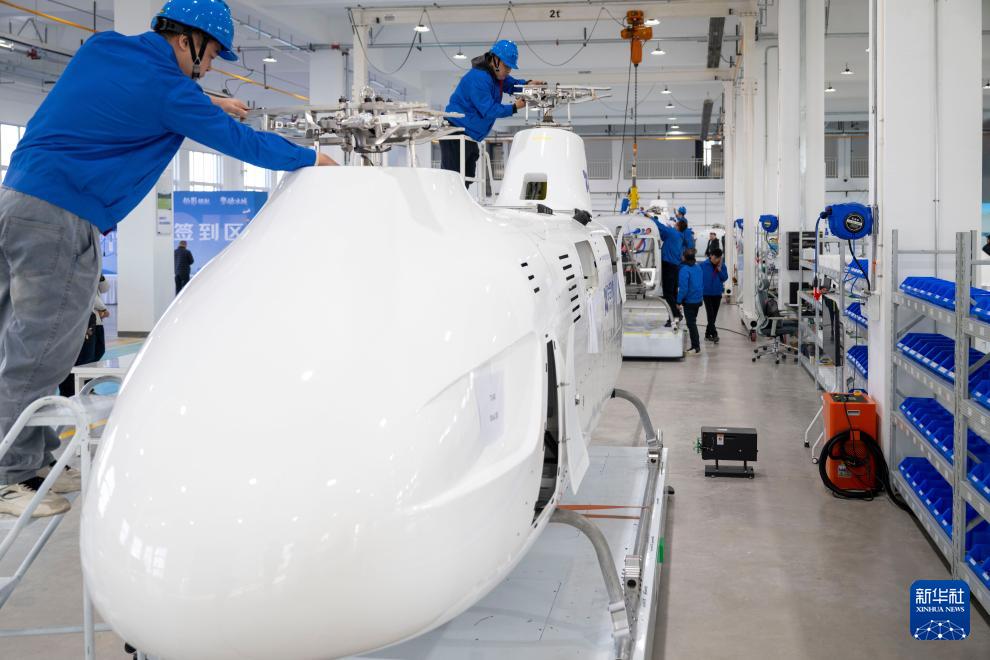 10月30日,在哈爾濱市平房區(qū)的哈爾濱聯(lián)合飛機科技有限公司生產(chǎn)廠區(qū),工作人員裝配T1400無人直升機。
