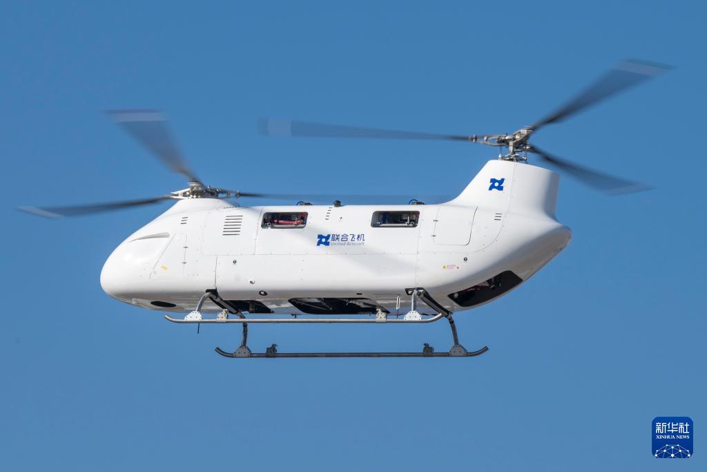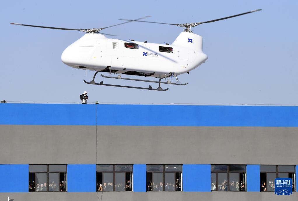 10月30日,在哈爾濱市平房區(qū)的哈爾濱聯(lián)合飛機科技有限公司,T1400無人直升機在飛行中。