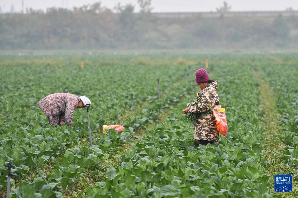 10月30日,菜農(nóng)在沅江市草尾鎮(zhèn)樂(lè)園村蔬菜田里采收。