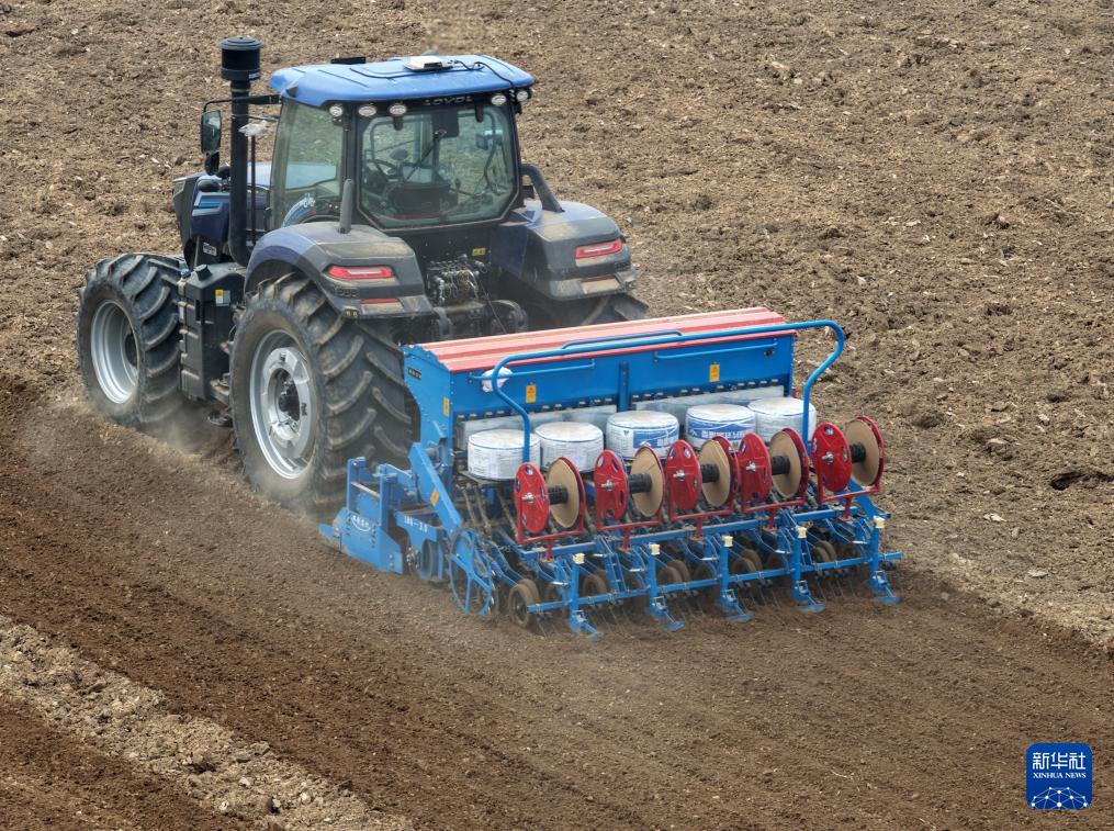 近日,河南省“三秋”工作正在轉(zhuǎn)入騰茬整地和小麥播種階段,不少地方搶抓農(nóng)時(shí),加緊播種冬小麥,無(wú)人機(jī)、無(wú)人駕駛拖拉機(jī)等新型農(nóng)機(jī)在田間“大顯身手”,新農(nóng)人們用科技賦能農(nóng)業(yè)生產(chǎn),助力秋播。