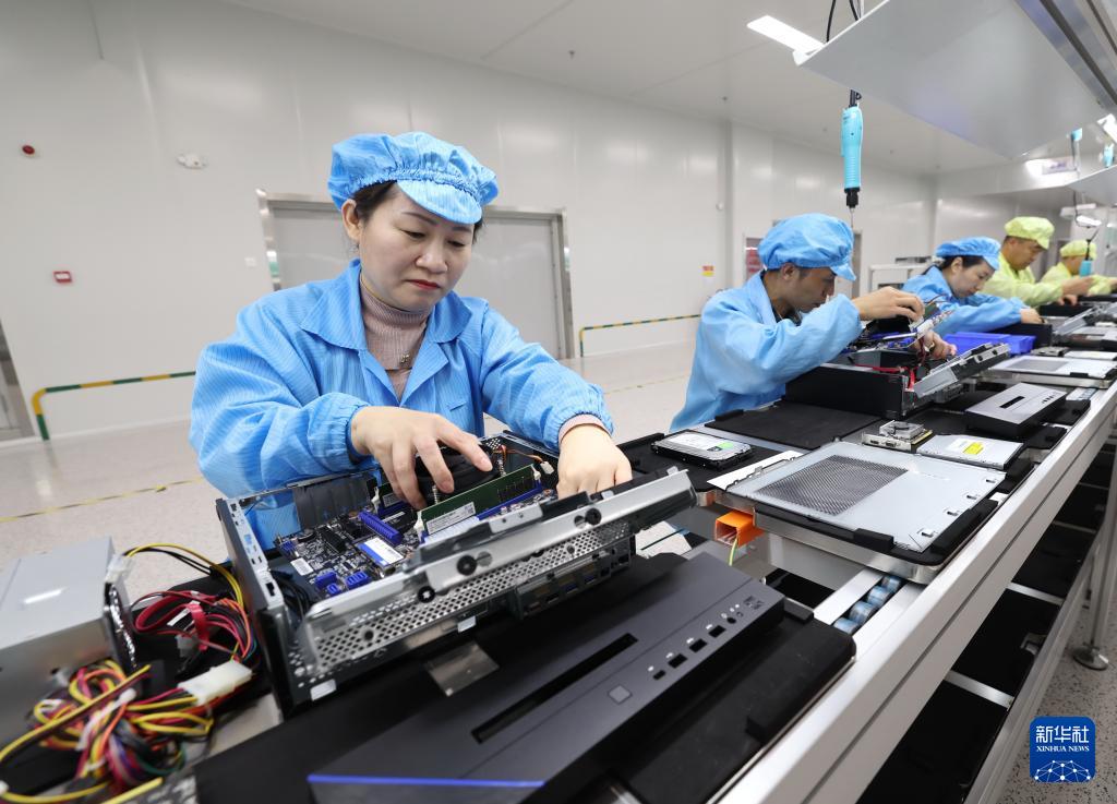 10月31日,工人在石家莊高新技術(shù)產(chǎn)業(yè)開發(fā)區(qū)電子科技園區(qū)光電創(chuàng)芯園的格瑞邦(河北)數(shù)字科技有限公司生產(chǎn)線上裝配電腦。