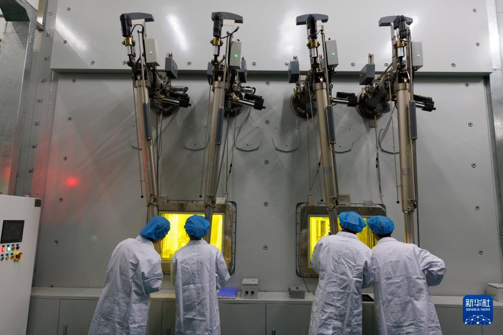 10月24日,科研人員在2兆瓦液態(tài)燃料釷基熔鹽實(shí)驗(yàn)堆廠房,用機(jī)械手取出燃料鹽樣品。