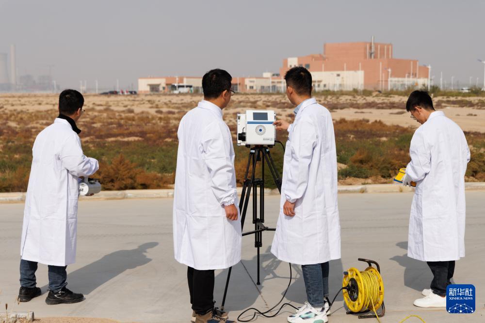 10月24日,在中國科學(xué)院上海應(yīng)用物理研究所武威園區(qū),工作人員在開展后續(xù)建設(shè)現(xiàn)場討論。