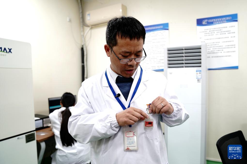 10月24日,在中國科學(xué)院上海應(yīng)用物理研究所武威園區(qū),工作人員介紹“熱釋光個(gè)人劑量計(jì)”,該儀器可隨時(shí)測量輻射的個(gè)人計(jì)量當(dāng)量以確保安全。