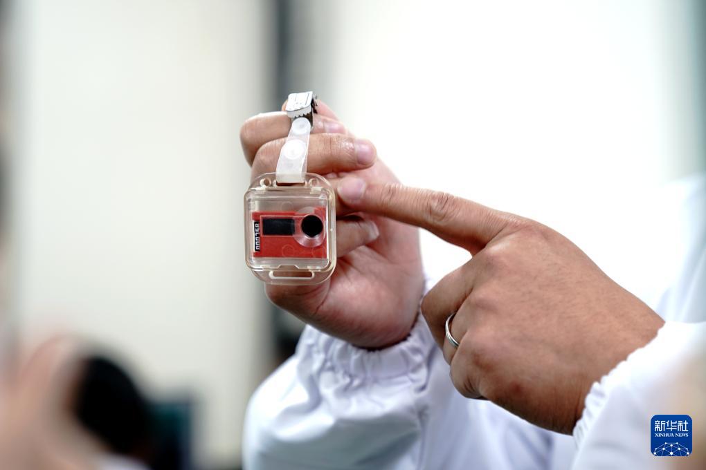10月24日,在中國科學(xué)院上海應(yīng)用物理研究所武威園區(qū),一位工作人員在佩戴“熱釋光個(gè)人劑量計(jì)”,該儀器可隨時(shí)測量輻射的個(gè)人計(jì)量當(dāng)量以確保安全。