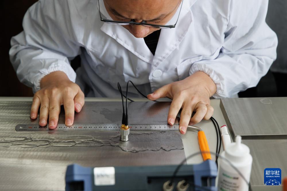 10月23日,在位于中國科學(xué)院上海應(yīng)用物理研究所嘉定園區(qū)的無損檢測實(shí)驗(yàn)室,科研人員在觀察用于建設(shè)液態(tài)燃料釷基熔鹽實(shí)驗(yàn)堆的合金材料的焊接質(zhì)量。