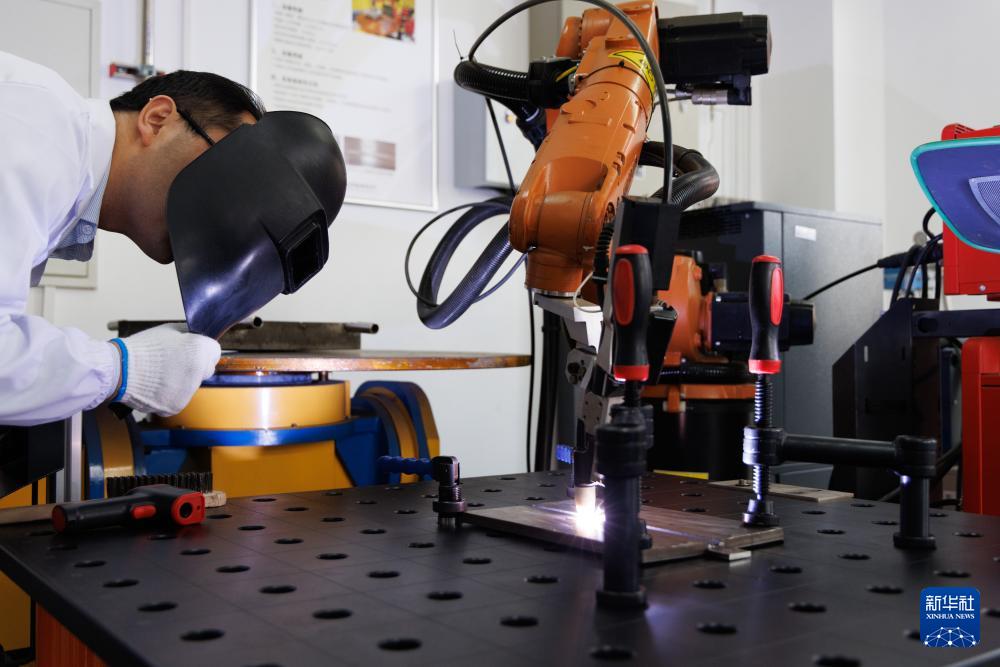 10月23日,在位于中國科學(xué)院上海應(yīng)用物理研究所嘉定園區(qū)的焊接實(shí)驗(yàn)室,科研人員在觀察用于建設(shè)液態(tài)燃料釷基熔鹽實(shí)驗(yàn)堆的合金材料的焊接進(jìn)展。