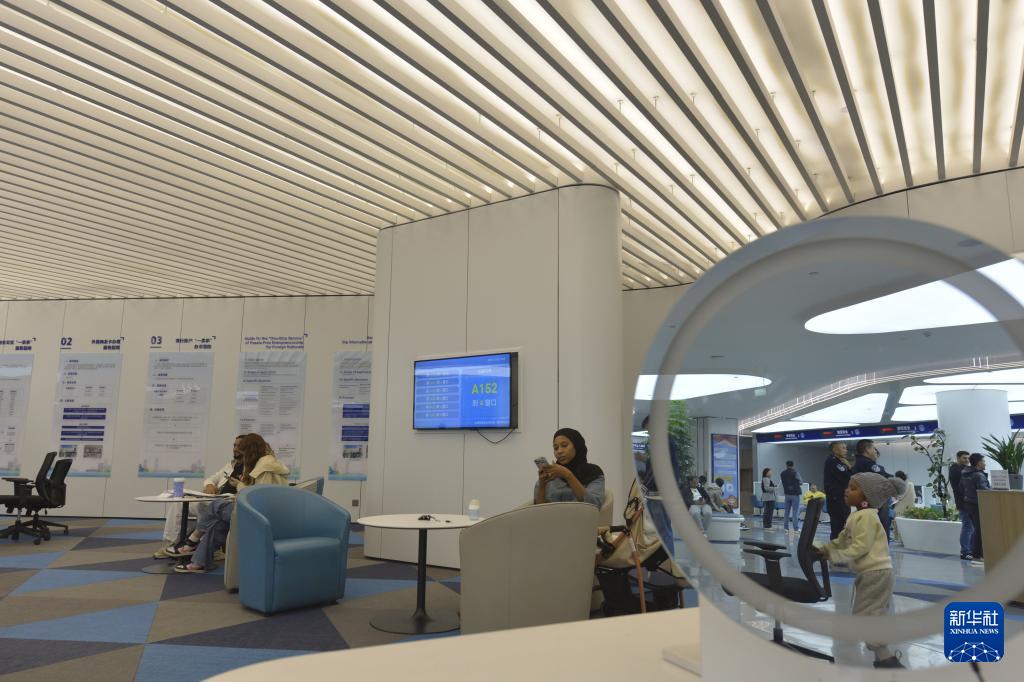 這是10月30日在浙江省義烏市拍攝的全球數(shù)貿(mào)中心內(nèi)的信息展示區(qū)。