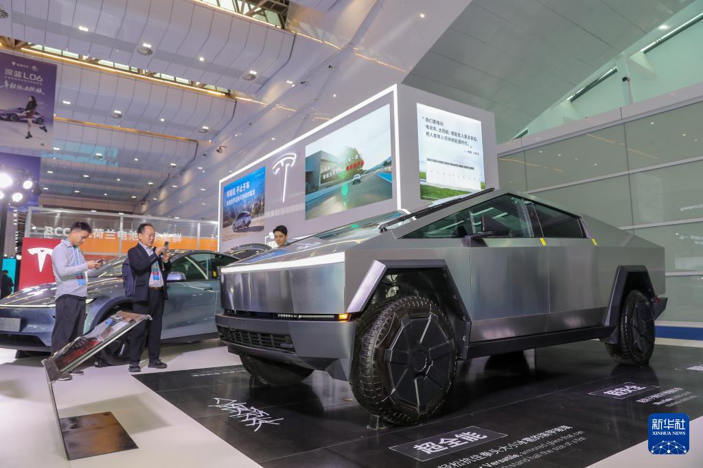 11月12日,參觀者在了解特斯拉電動皮卡。