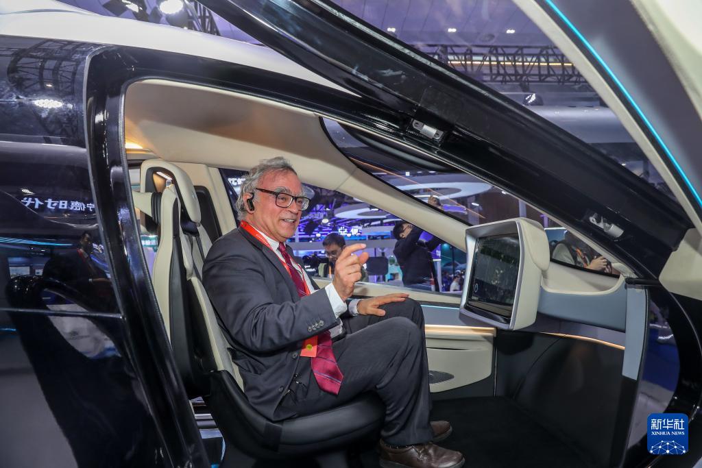 11月12日,一名外國嘉賓感受電動飛行汽車。