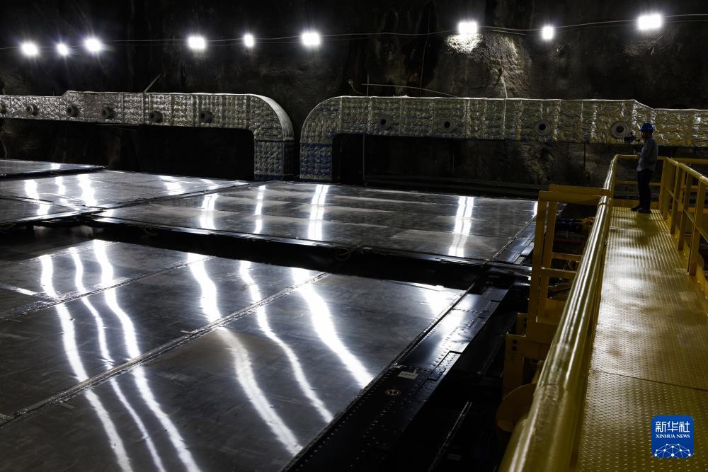 11月18日在江門中微子實驗大廳拍攝的繆子探測裝置。