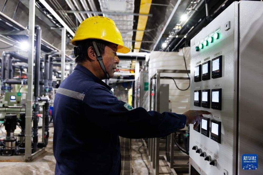 11月18日,工作人員在純水間監(jiān)測超純水處理情況。