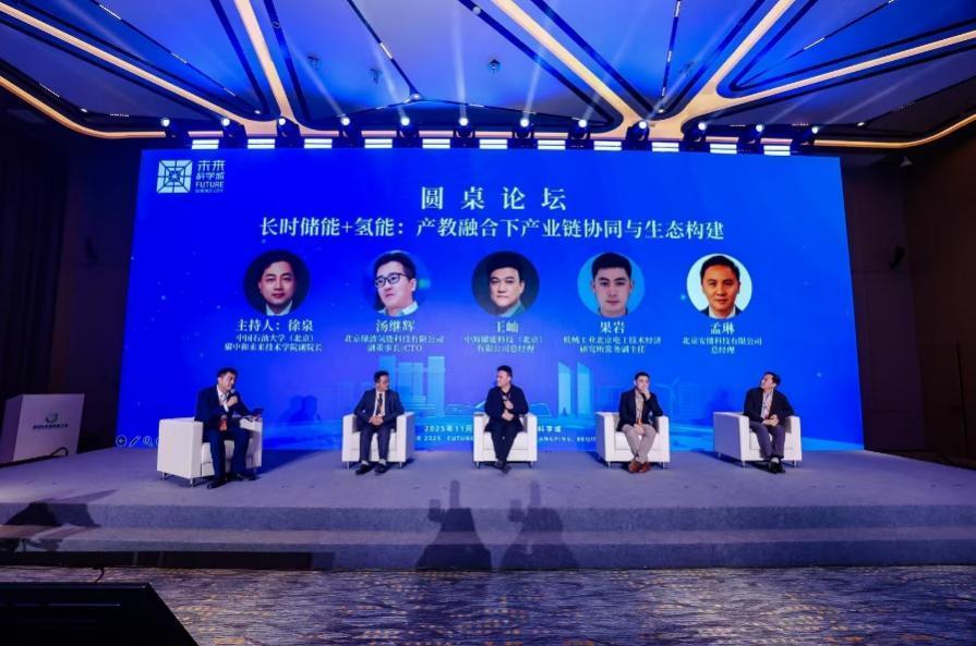 技術(shù)創(chuàng)新是本次大會的核心亮點。中國科學(xué)院院士、北京大學(xué)納米科學(xué)與技術(shù)研究中心主任、北京石墨烯研究院院長劉忠范介紹,作為電熱轉(zhuǎn)換領(lǐng)域的殺手锏材料,3000型蒙烯玻纖產(chǎn)品實現(xiàn)了工業(yè)級碳源替代,產(chǎn)品一致性提高了12%,已廣泛應(yīng)用于無人機、風(fēng)電葉片除冰、鋰電烘干等多個關(guān)鍵領(lǐng)域。中國科學(xué)院院士、中國石油大學(xué)(北京)重質(zhì)油全國重點實驗室主任徐春明介紹了儲能平臺石墨烯復(fù)合電池生產(chǎn)線、綠電—綠氫—合成氨過程耦合等技術(shù)突破,基于碳布電極的500kW 鐵鉻液流電池儲能模塊及裝備入選國家能源局能源領(lǐng)域首臺(套)重大技術(shù)裝備名單,引領(lǐng)低成本長時儲能發(fā)展。華北電力大學(xué)能源電力創(chuàng)新研究院執(zhí)行院長、國家儲能技術(shù)產(chǎn)教融合創(chuàng)新平臺(華北電力大學(xué))常務(wù)副主任徐超介紹,華北電力大學(xué)國家儲能技術(shù)產(chǎn)教融合創(chuàng)新平臺目前已經(jīng)建成電堆全堆測試臺、電化學(xué)儲能材料與器件實驗室、氫氨燃燒實驗室等,下一步將形成“源網(wǎng)荷儲”一體化工程試驗系統(tǒng),帶動相關(guān)產(chǎn)業(yè)產(chǎn)值超過10億元。天津津通華電氣集團有限公司介紹了新能源風(fēng)光充結(jié)合儲能的全方位系統(tǒng)性應(yīng)用,中國石化潤滑油有限公司分享了石化行業(yè)技術(shù)在新型儲能上中下游的全要素解決方案。圓桌會議則針對產(chǎn)教融合下長時儲能+氫能產(chǎn)業(yè)鏈協(xié)同與生態(tài)構(gòu)建的研討,為產(chǎn)業(yè)跨界融合與可持續(xù)發(fā)展凝聚了智慧。
