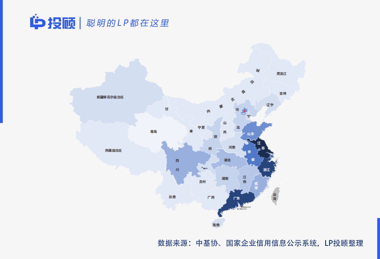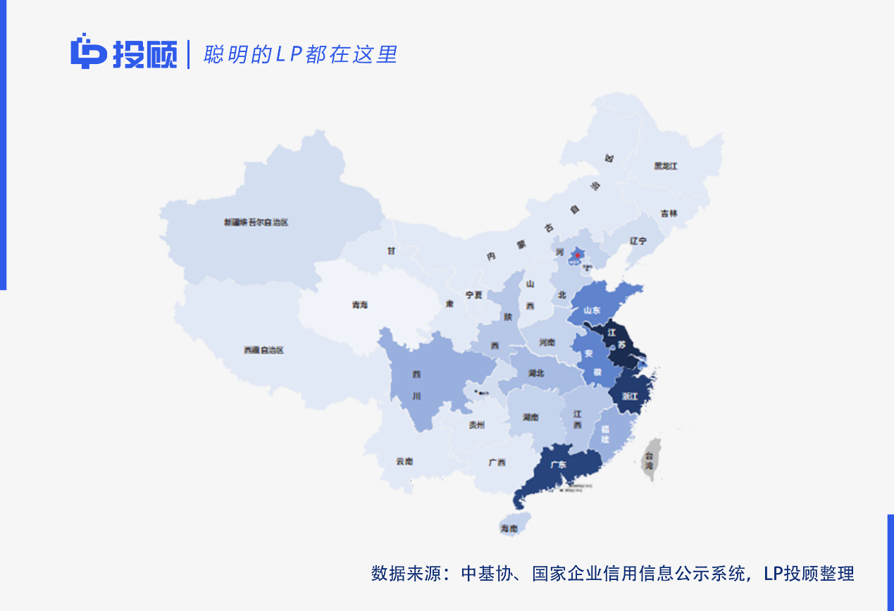 2024年,活躍機(jī)構(gòu)LP主要集中在江蘇省、浙江省、廣東省、上海市、北京市等東南沿海發(fā)達(dá)地區(qū)。