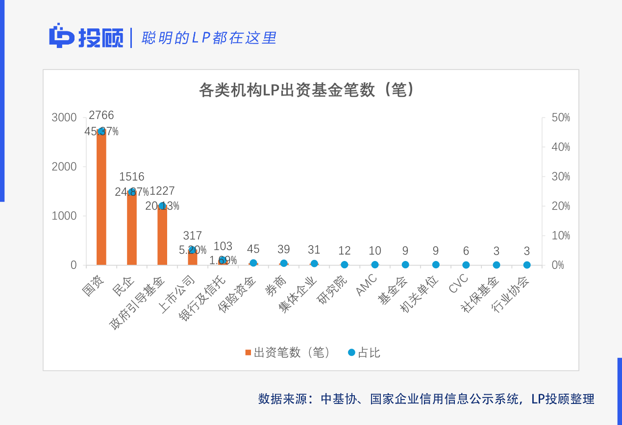 另一方面,出資10億元及以上的288家機(jī)構(gòu)LP中,國資170家,政府引導(dǎo)基金73家,二者合計(jì)占比高達(dá)84.38%,而民企和上市公司僅14家,占比4.86%;出資50億元及以上的39家機(jī)構(gòu)LP中,國資22家,政府引導(dǎo)基金11家,二者合計(jì)占比高達(dá)84.62%;而民企及上市公司僅1家。頭部出資主體中,國資和政府引導(dǎo)基金已成為出資主力,實(shí)力遠(yuǎn)高于民企及上市公司等市場化LP。
